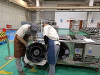 本次勞動競賽主要以空調檢修室外風機組裝為參賽項目,參賽內(nèi)容包括風機安裝緊固、連接器對接安裝、配線綁扎等基本崗位操作技能。