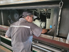駐青島售后服務(wù)人員李文龍對(duì)空調(diào)機(jī)組送風(fēng)機(jī)變壓器保護(hù)罩粘貼的溫度貼溫度值進(jìn)行全數(shù)普查,并對(duì)空調(diào)機(jī)組進(jìn)行點(diǎn)檢工作,對(duì)換氣裝置進(jìn)行震動(dòng)測量,對(duì)空調(diào)機(jī)組、牽引變流器、換氣裝置發(fā)生的故障立即進(jìn)行處置,確保問題不過夜,產(chǎn)品安全穩(wěn)定運(yùn)行。