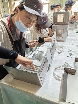 賽前,參賽職工把材料、工具、部件準(zhǔn)備到位,再進(jìn)行變壓器外罩內(nèi)側(cè)密封,部件組裝螺栓緊固,最后外觀再次密封,確保比賽過(guò)程萬(wàn)無(wú)一失。裁判組講解規(guī)則后,宣布比賽開(kāi)始,大家立即投入比賽中。